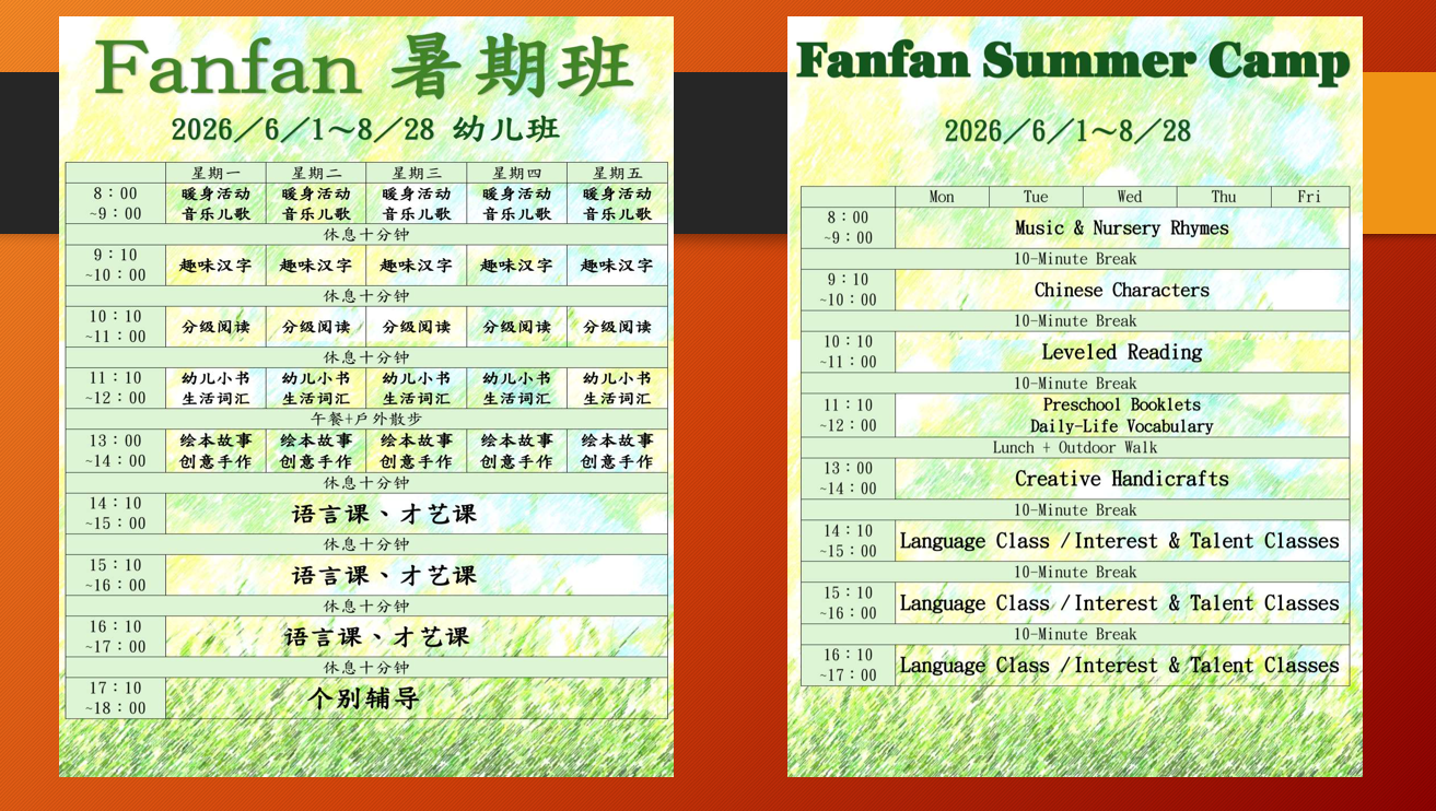 FANFAN CHINESE LANGUAGE ACADEMY CHINESE SUMMER CAMP 2025: