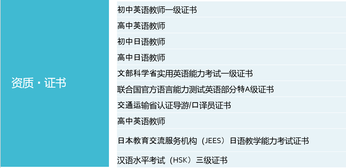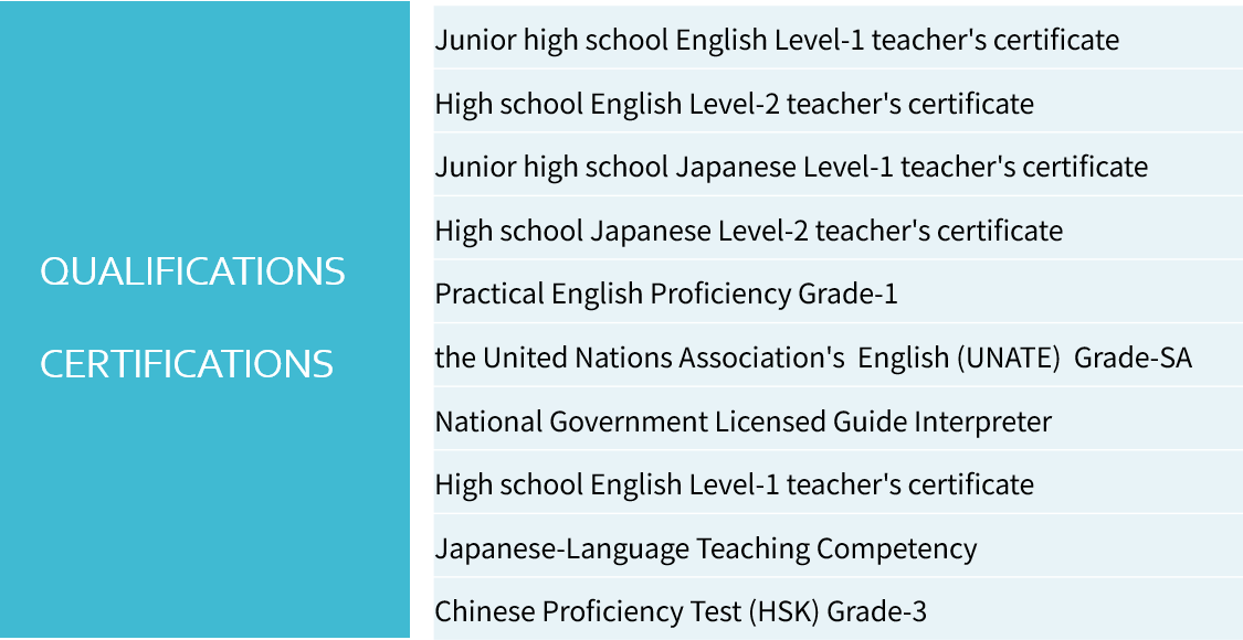 • Certified teacher of Chinese as a foreign language